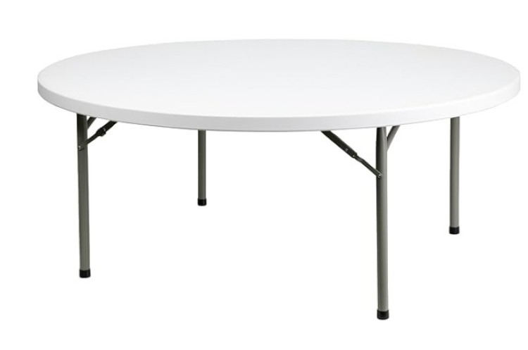 A classic 60-inch round banquet table (8-10 Chairs) that seats guests comfortably for dinners, meetings, or events. Its spacious circular surface provides plenty of room for place settings, centerpieces, and serving dishes, making it ideal for weddings, conferences, receptions, and family gatherings. Built for rental use, it’s sturdy and easy to set up and break down, fits well in tents and halls, and pairs nicely with standard folding chairs and table linens. Simple, versatile, and practical—this round table helps create a polished, communal seating arrangement for any occasion.